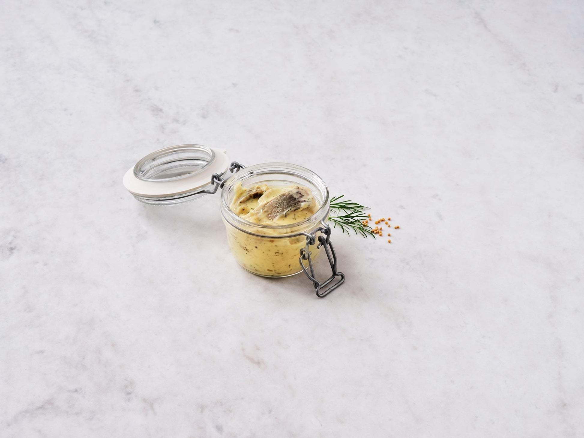 Ingredienser: 150 g Sill från Norge <Clupea Harengus>, senap, majonnäs <rapsolja, ägg, ättika, cayennpeppar, senapsfrön>, olja, vinäger, ättika, socker, salt, dill, kryddor, konserveringsmedel E211.